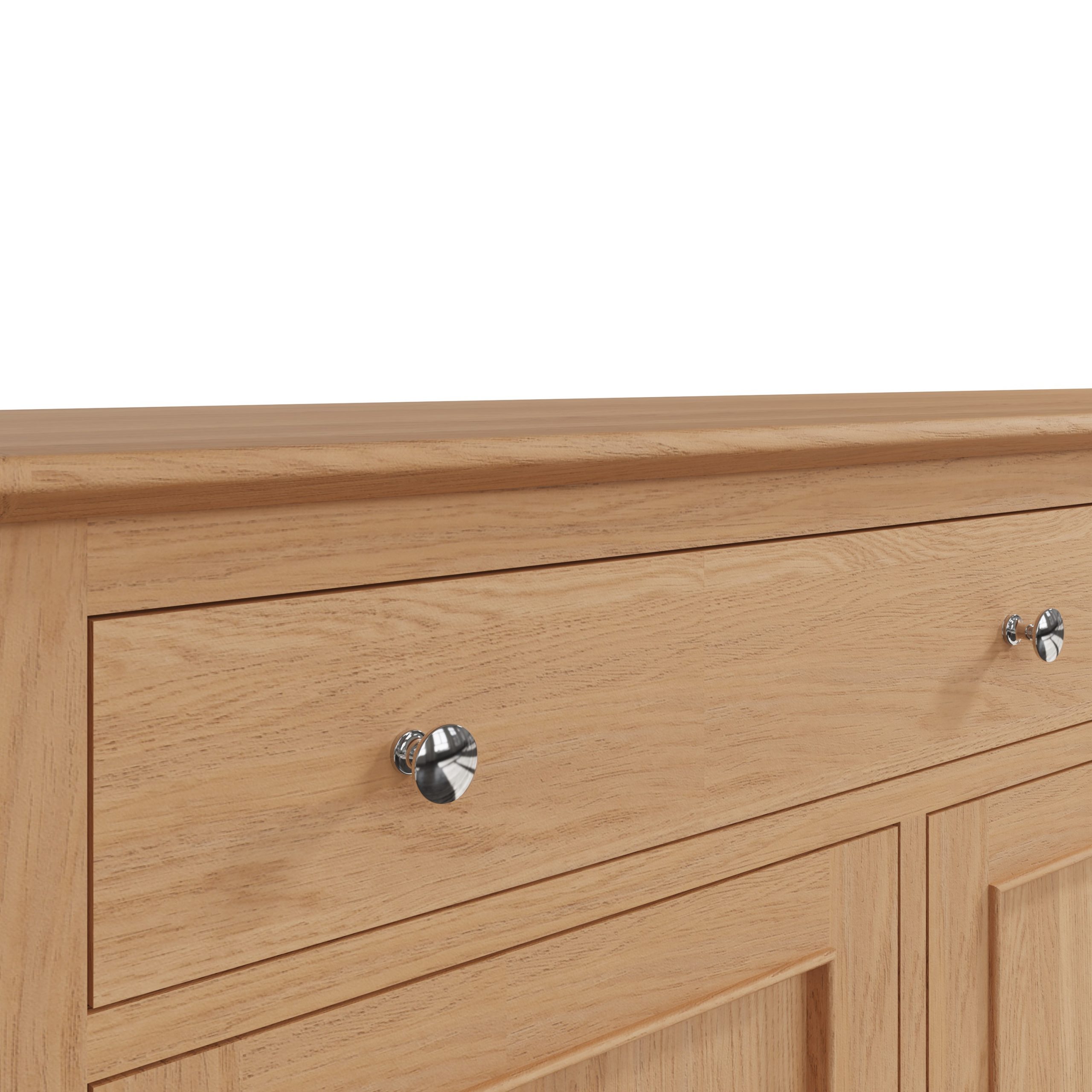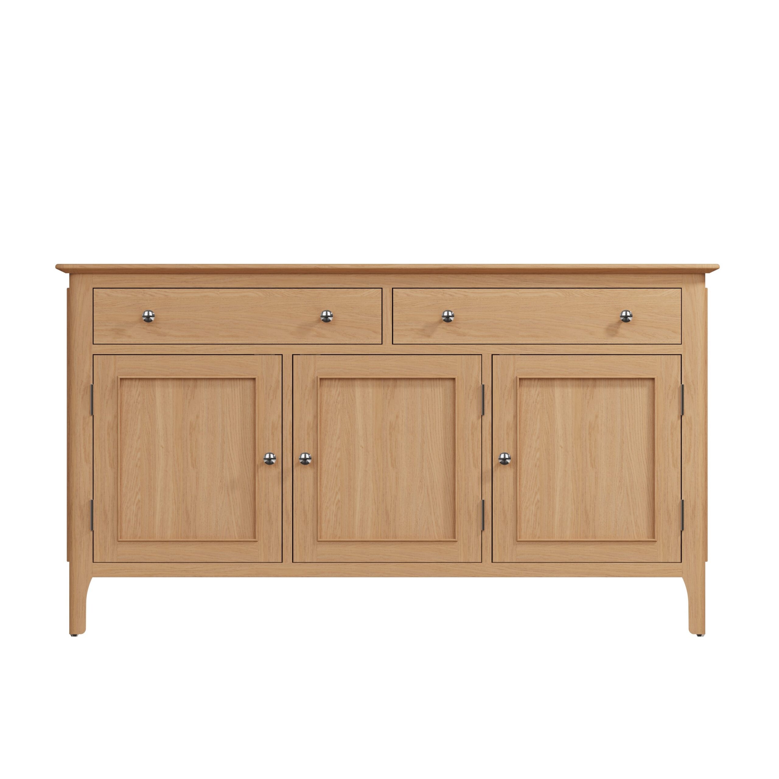 Oak sideboards can have different finishes, from natural oil treatments that highlight the wood’s grain to painted finishes for a more contemporary look. Choose a finish that enhances your room’s overall aesthetic.