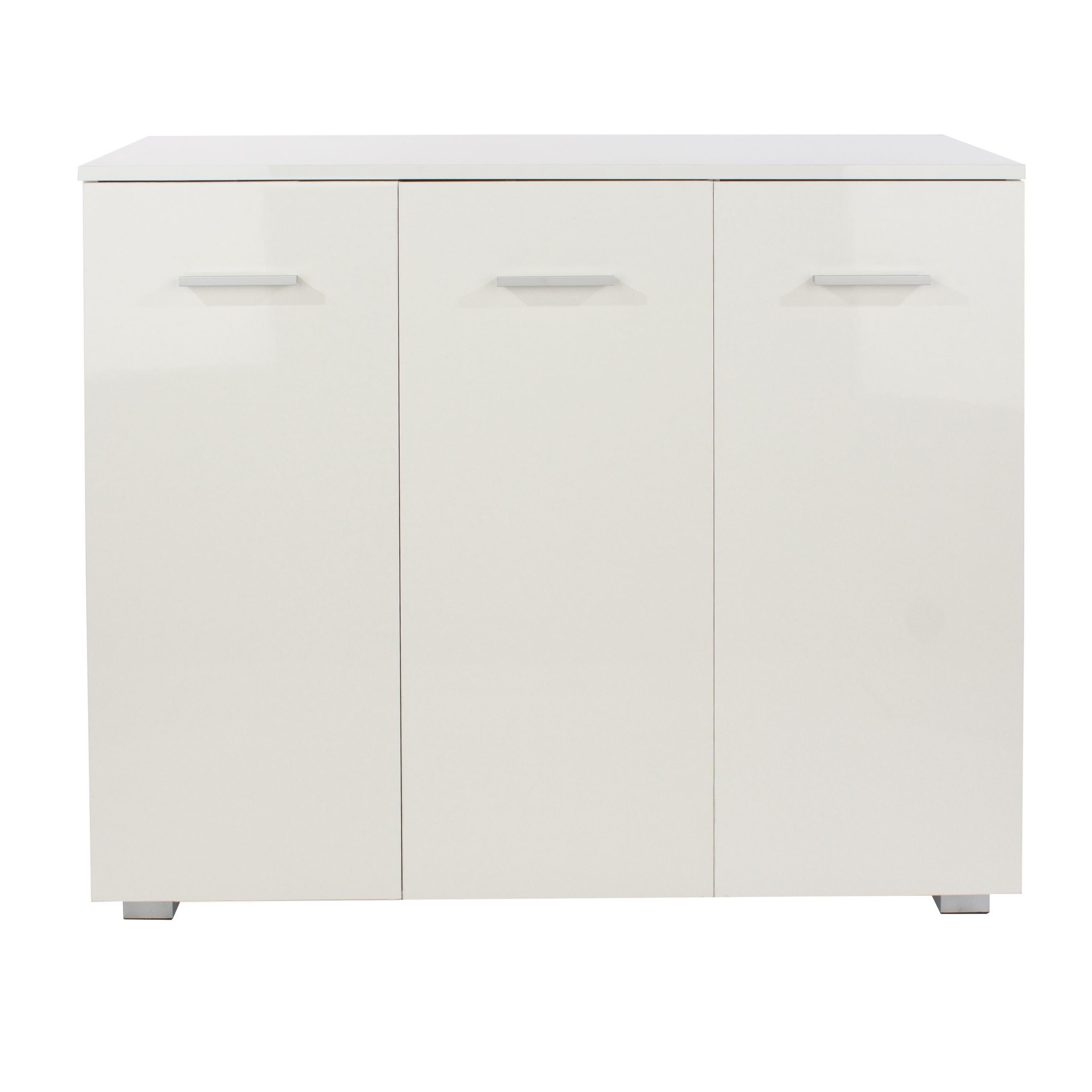 Our 3 door sideboard offers a simple, sleek storage solution for you. With double and single sections with fitted full depth shelves there is plenty of space to store anything you want, each door is fitted with metal adjustable self-closing hinges. We use a smooth gloss white film finish which is both hardwearing and easy to clean. Matt silver effect handles and feet complete the look whilst the easy glide drawer is ideal for everyday use.