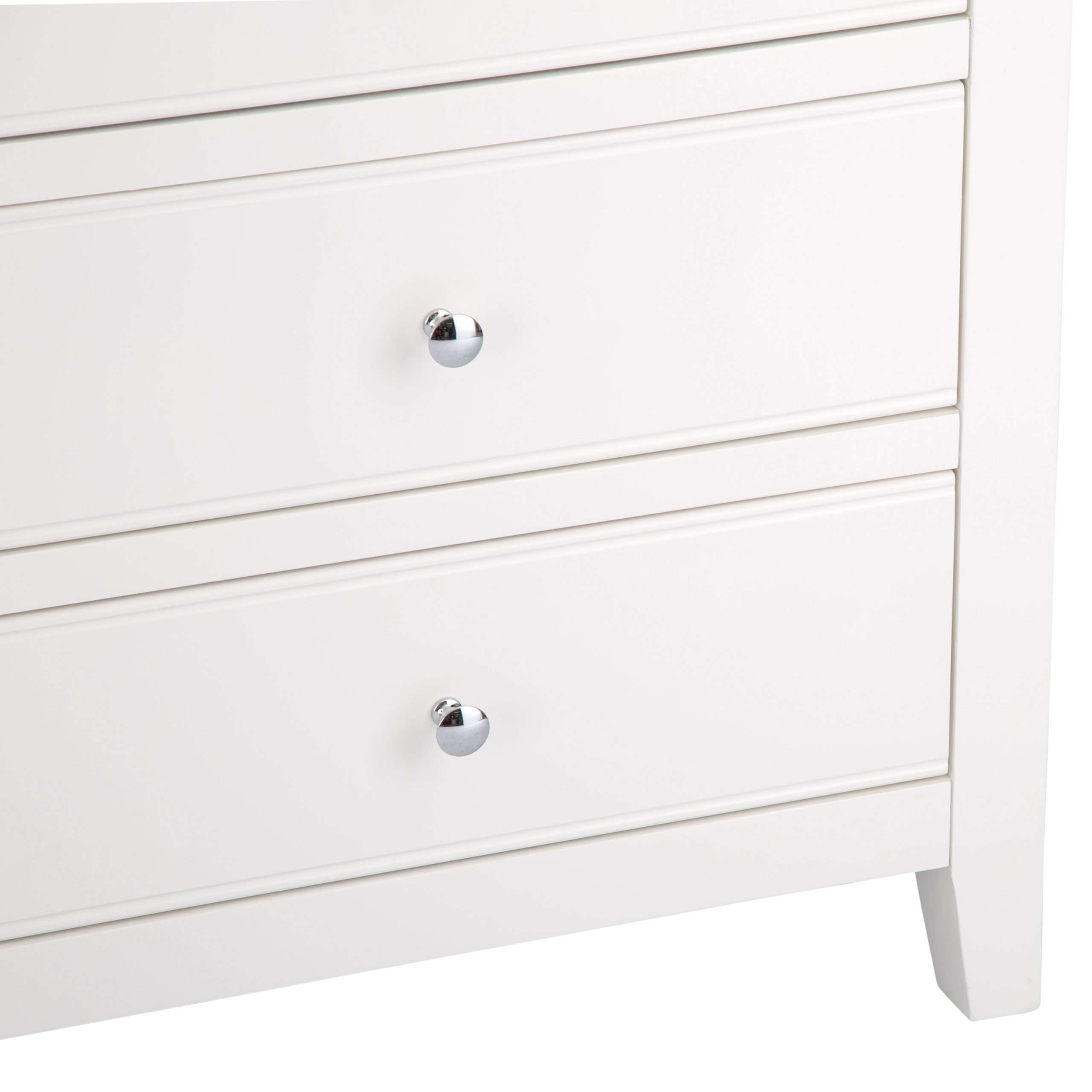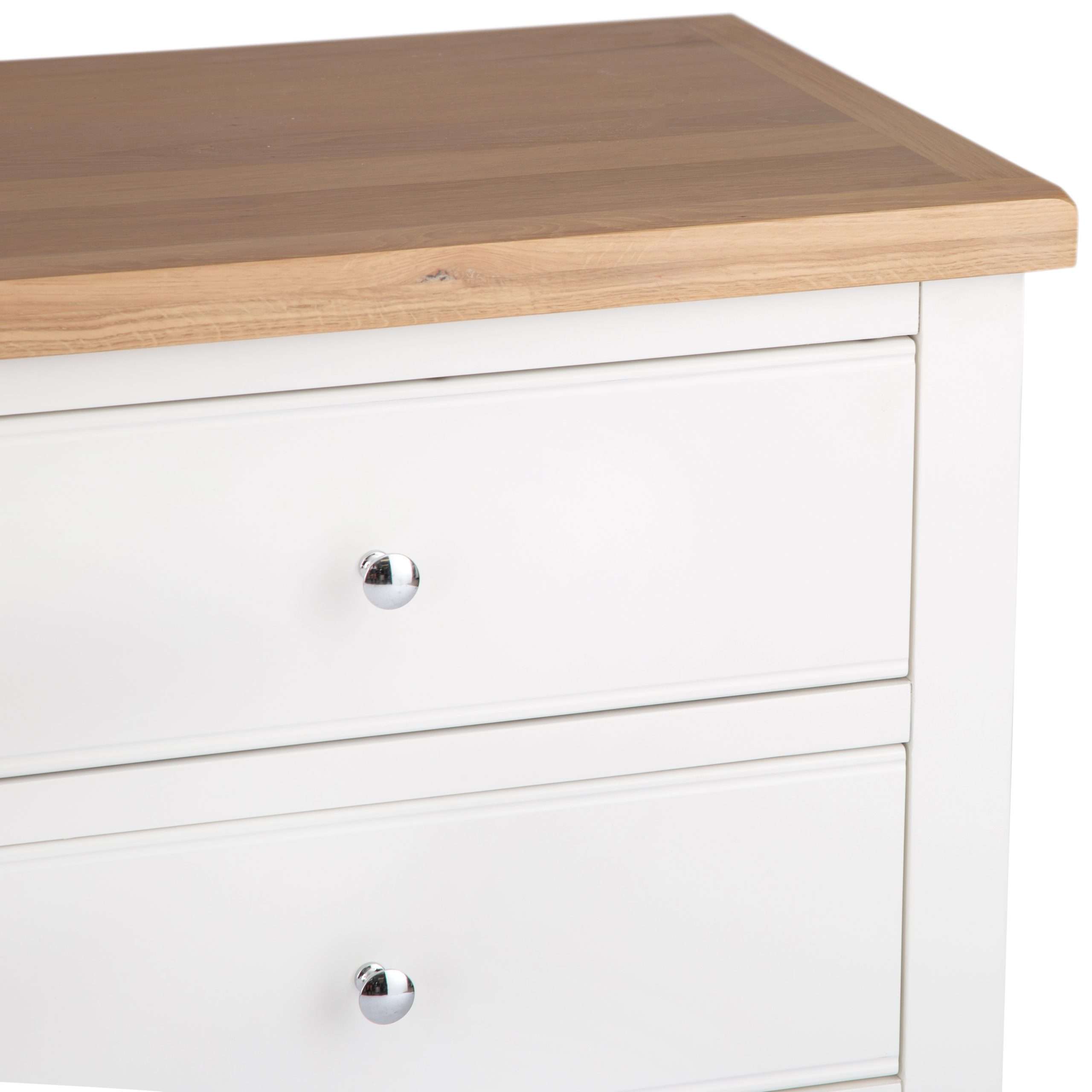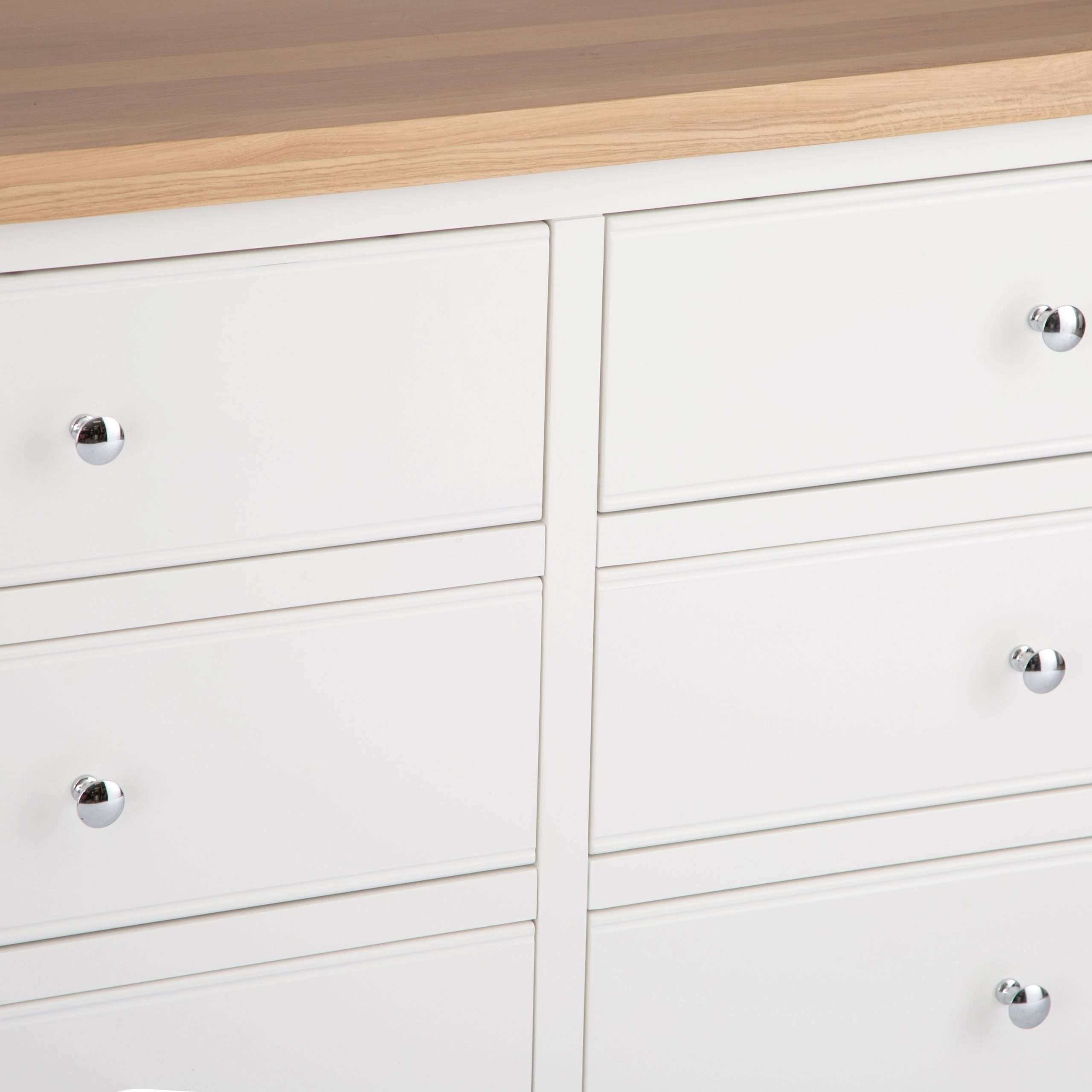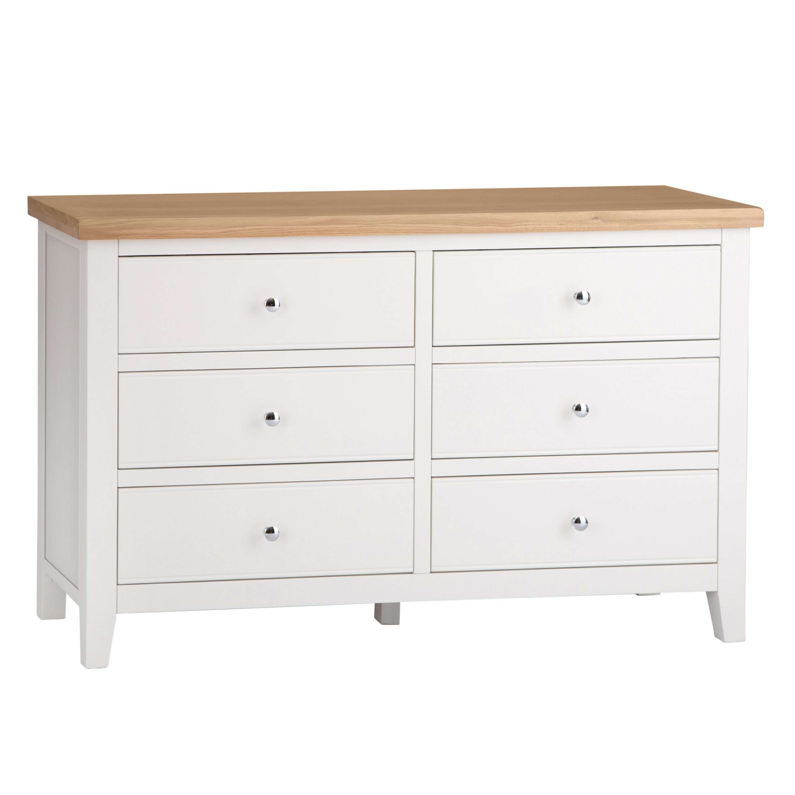 The sleek white finish adds a touch of sophistication to any room, while the oak top brings a natural element for a timeless appeal. Whether used in the bedroom, living room, or hallway, this chest of drawers complements any decor effortlessly. The six spacious drawers glide smoothly on their runners, allowing easy access to your belongings.