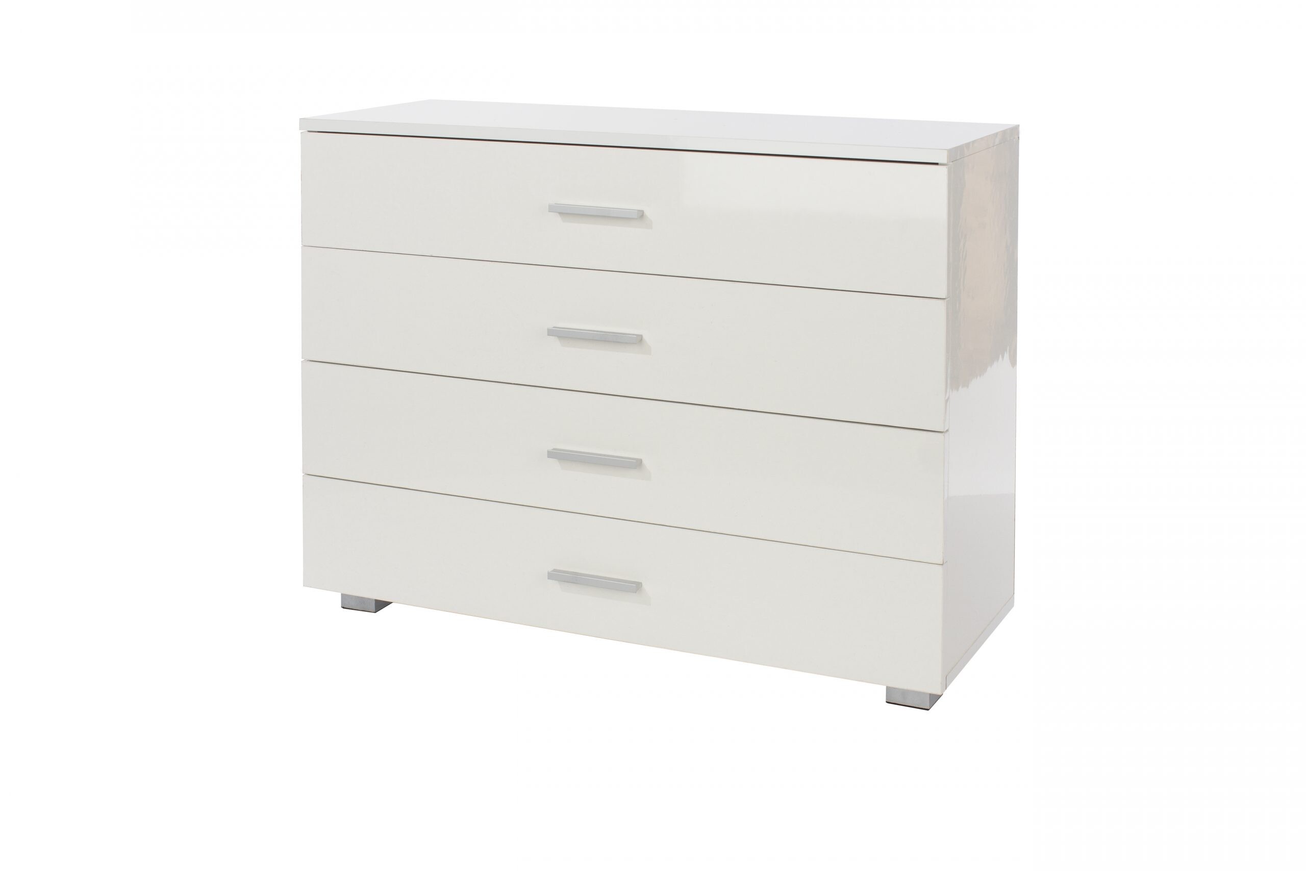 Our chest ofdrawers features a smooth gloss white film finish which is both hardwearing and easy to clean. Matt silver effect handles and feet complete the look whilst the easy glide drawers are ideal for everyday use.