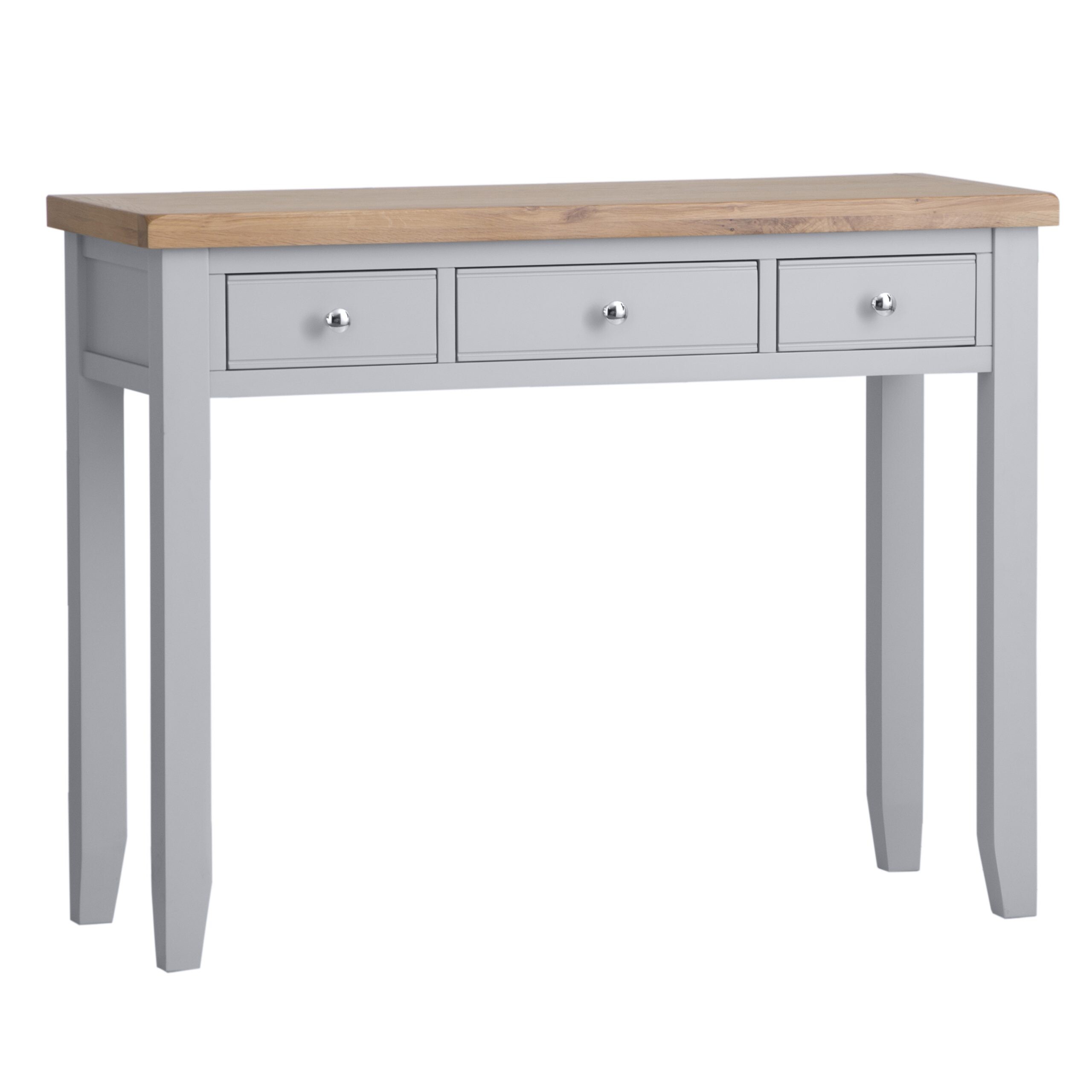 Elevate your morning routine with this sleek grey dressing table. Transform your space with its elegant design and ample storage for all your beauty essentials. Perfect for any modern bedroom, this dressing table will bring both style and functionality to your daily beauty regimen.