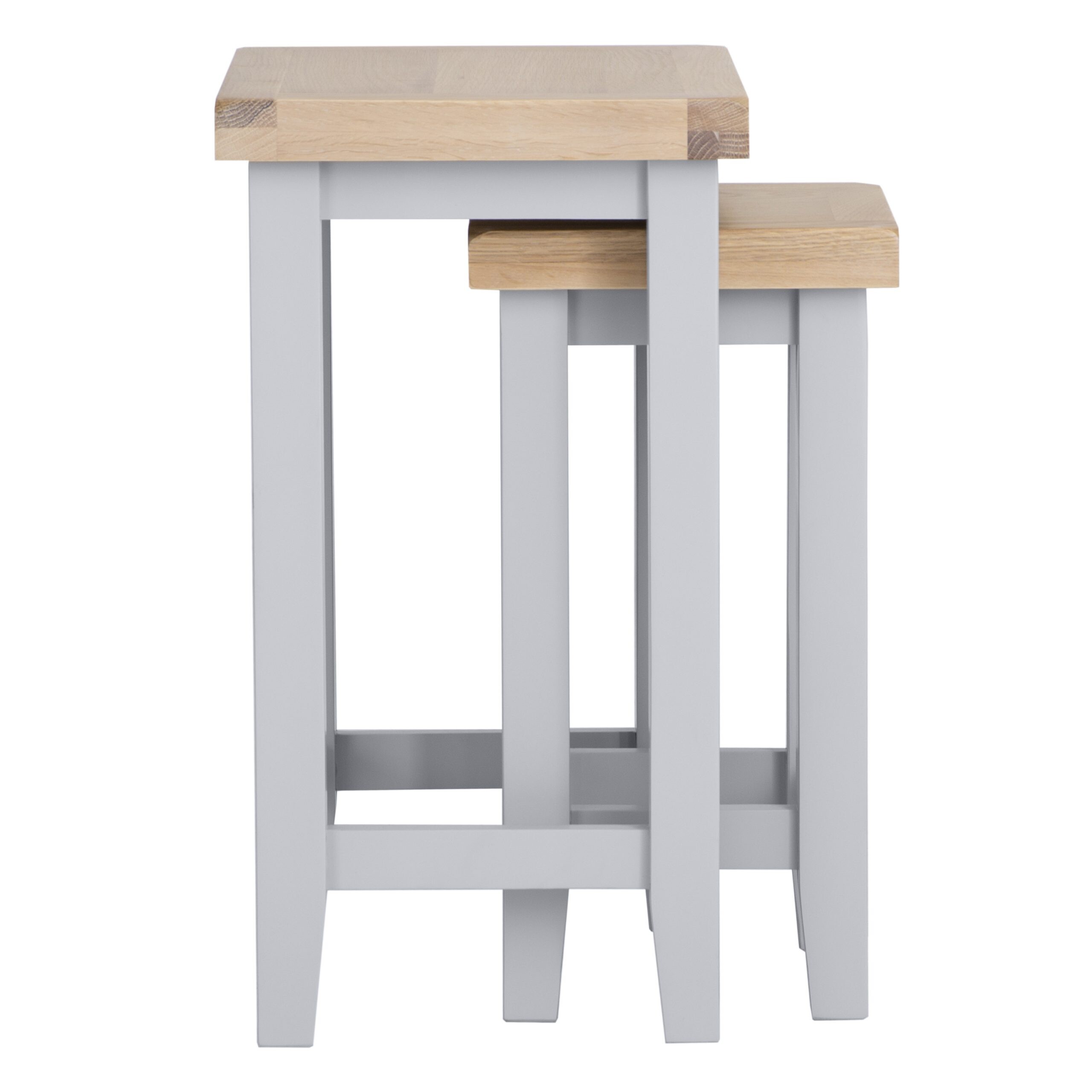 Transform your living space with this stylish and versatile nest of grey tables. Crafted to perfection, these tables are not just furniture pieces but a statement of elegance and functionality. The sleek grey finish adds a modern touch to any room, while the nesting design allows you to save space when needed.