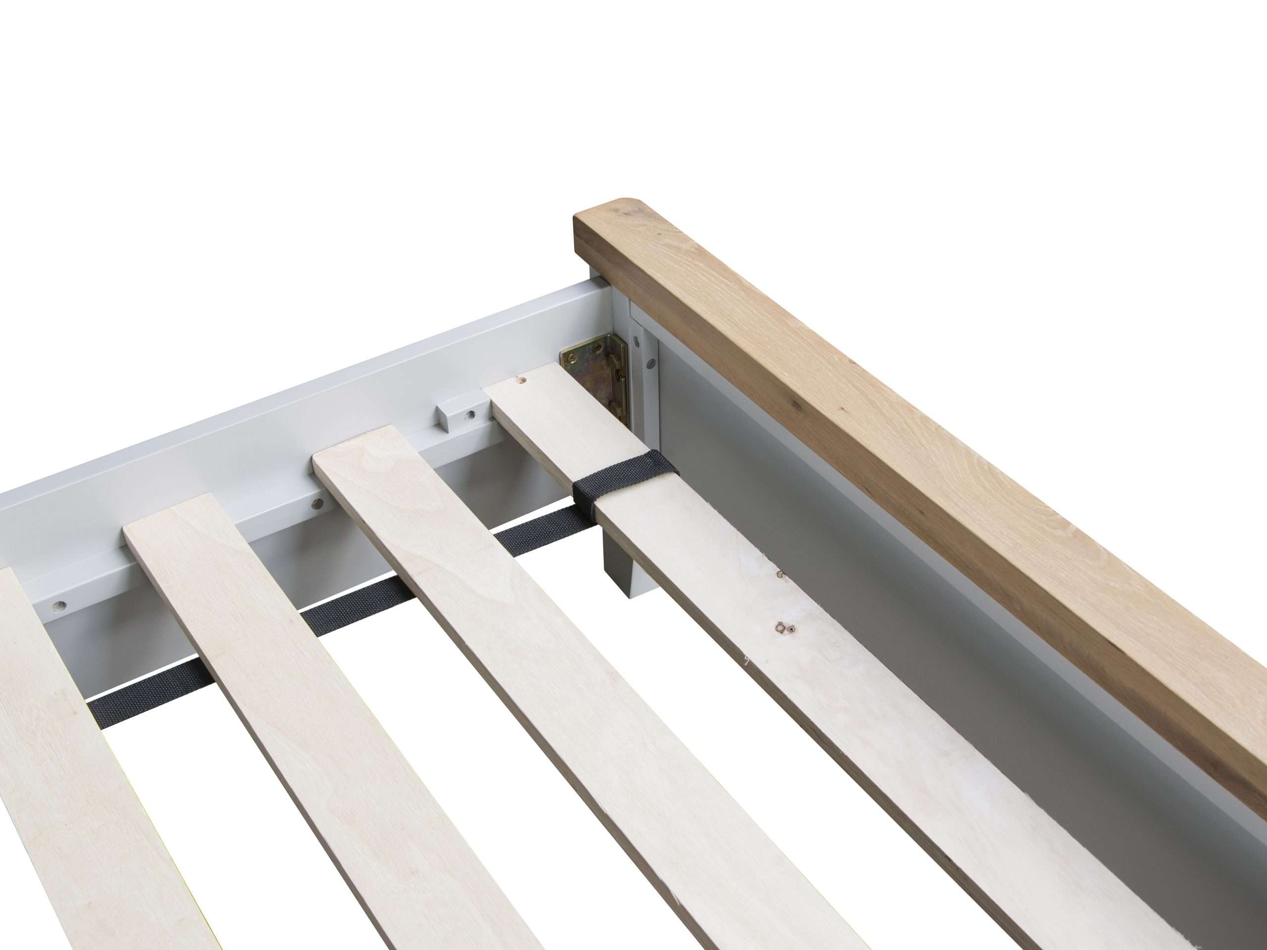 Transform your bedroom into a sanctuary of style and comfort with our exquisite Bed Frame King in White Painted finish. Crafted with precision and elegance, this bed frame seamlessly combines modern aesthetics with timeless appeal. The stunning white painted exterior beautifully contrasts with the warm oak accents, creating a striking visual impact that instantly elevates your bedroom decor.