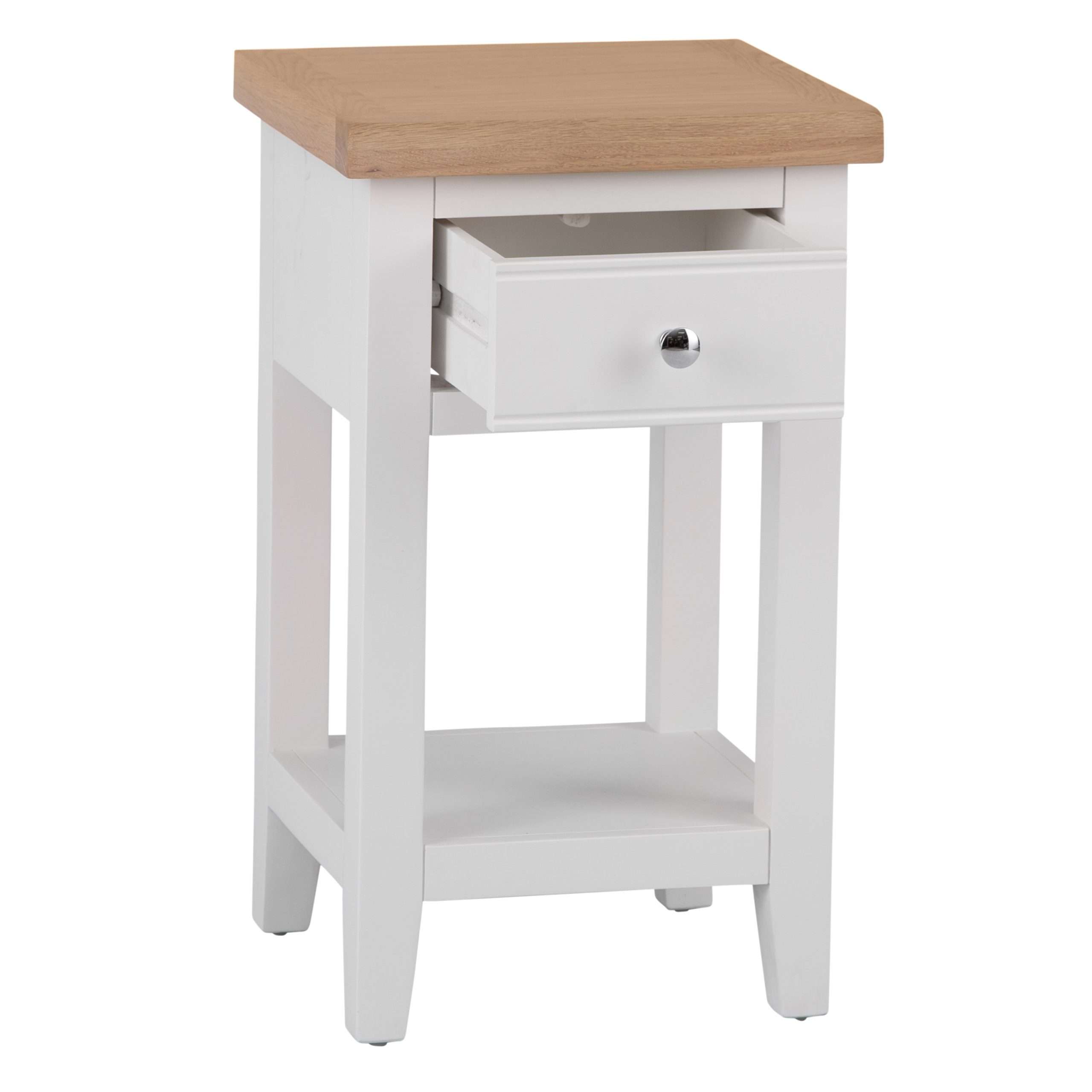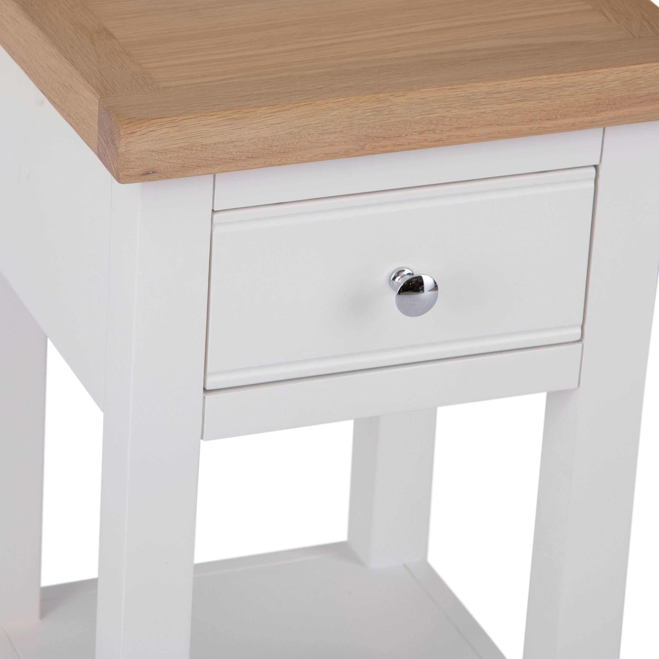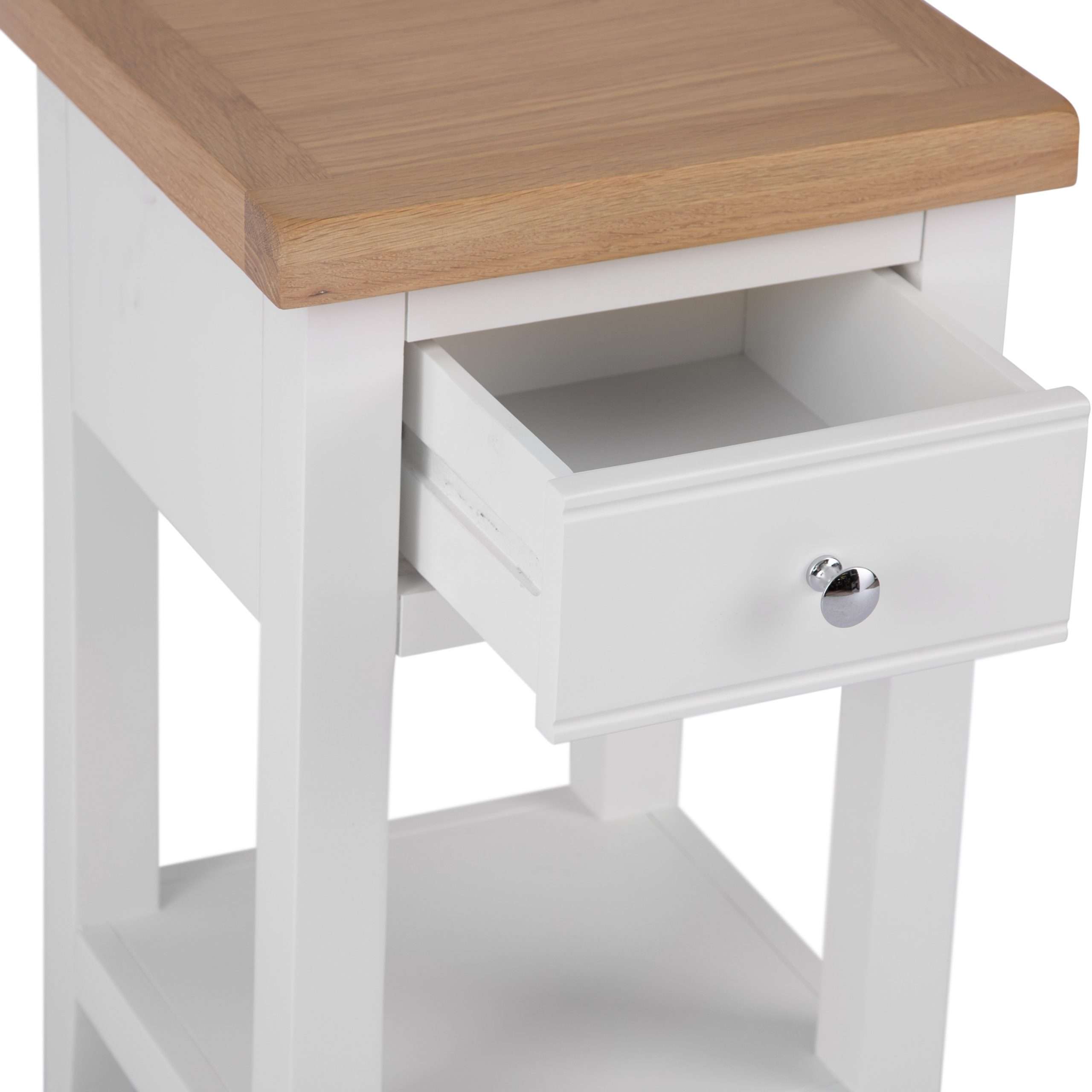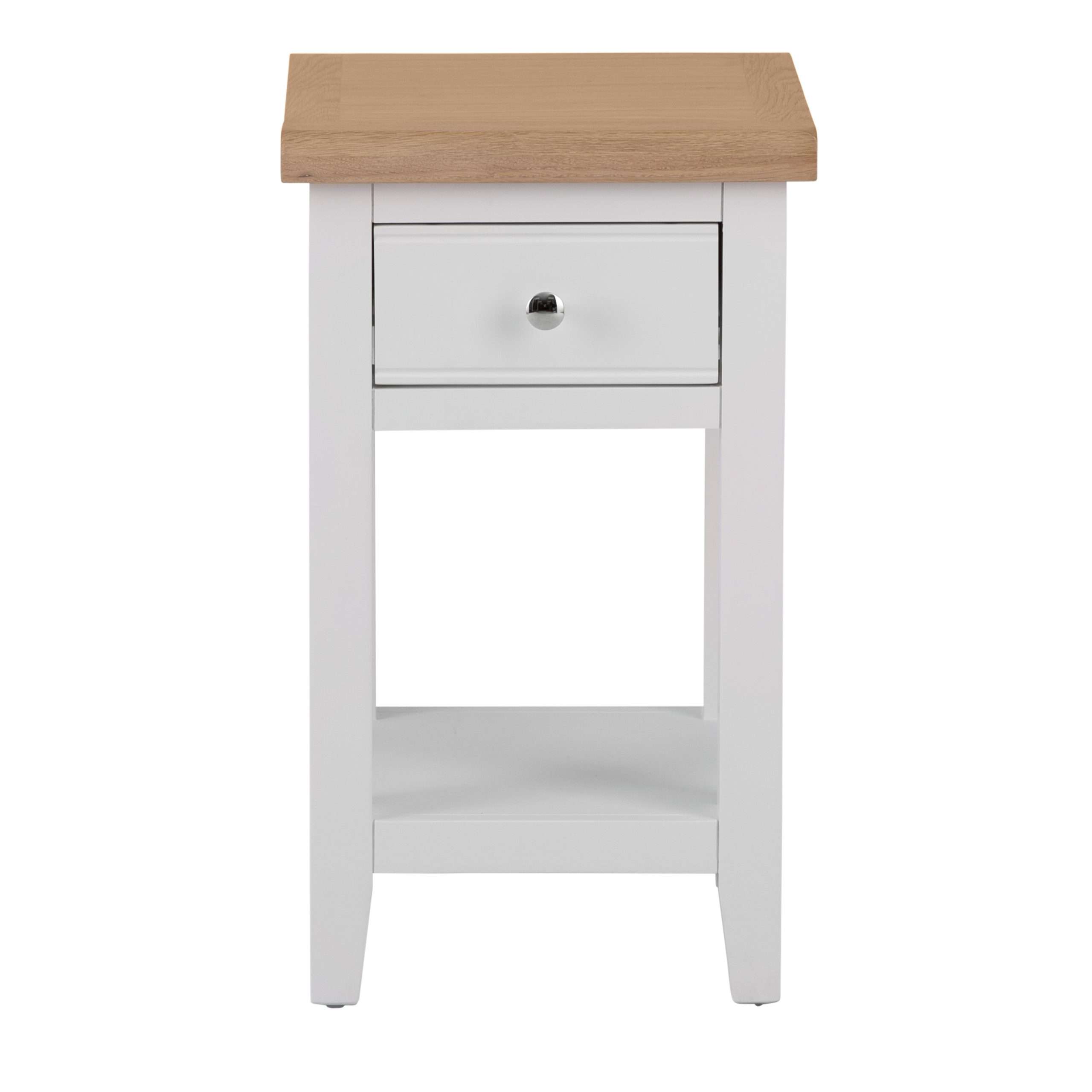 Imagine adding a touch of modern elegance to your living space with this stunning Contemporary Lamp Table. Crafted with a sleek white finish and a beautiful oak top, this table effortlessly combines style and functionality. Whether you place it next to your sofa or use it as a bedside table, its contemporary design will complement any decor. The sturdy construction ensures durability, while the spacious tabletop offers plenty of room for a lamp, books, or decorative items.