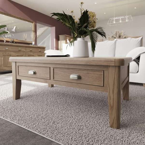 “Introducing the Regal Oak Furniture Collection Large Coffee Table. Introducing the Regal Oak Furniture Collection, an embodiment of regal splendor and enduring grace that transforms your living spaces into a realm of timeless luxury. Immerse yourself in the opulence of this collection, where each piece is meticulously crafted to evoke a sense of regality and refinement.