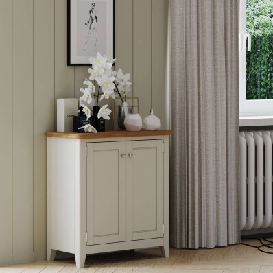 For dining rooms where a full-sized sideboard feels too heavy, this cabinet serves as a perfect petite buffet. It can easily accommodate stacks of dinner plates and serving bowls inside. Use the top surface as a drinks station during gatherings, or simply to display a vase of fresh flowers. It pairs beautifully with our broader range of grey sideboards if you later decide to expand your storage suite.