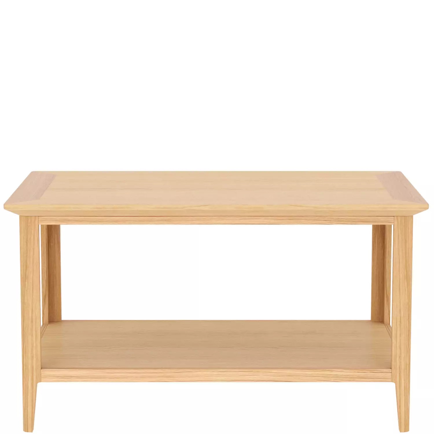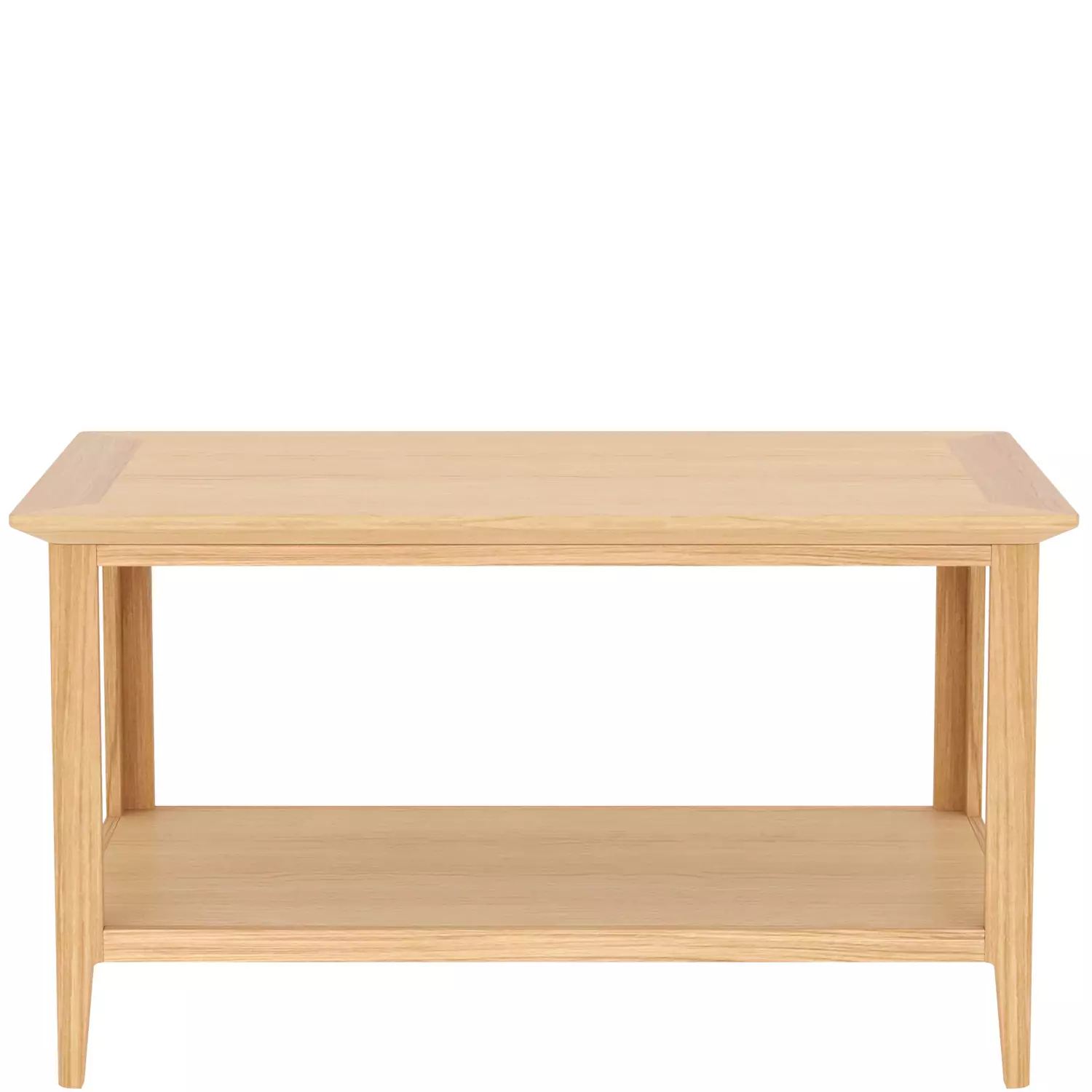 The light oak finish brings Scandinavian-inspired warmth to your space. The blonde wood tones create a sense of airiness that makes rooms feel more spacious, while the visible grain adds natural character. The shelf provides textural contrast that makes this coffee table more visually interesting than solid wood alternatives.