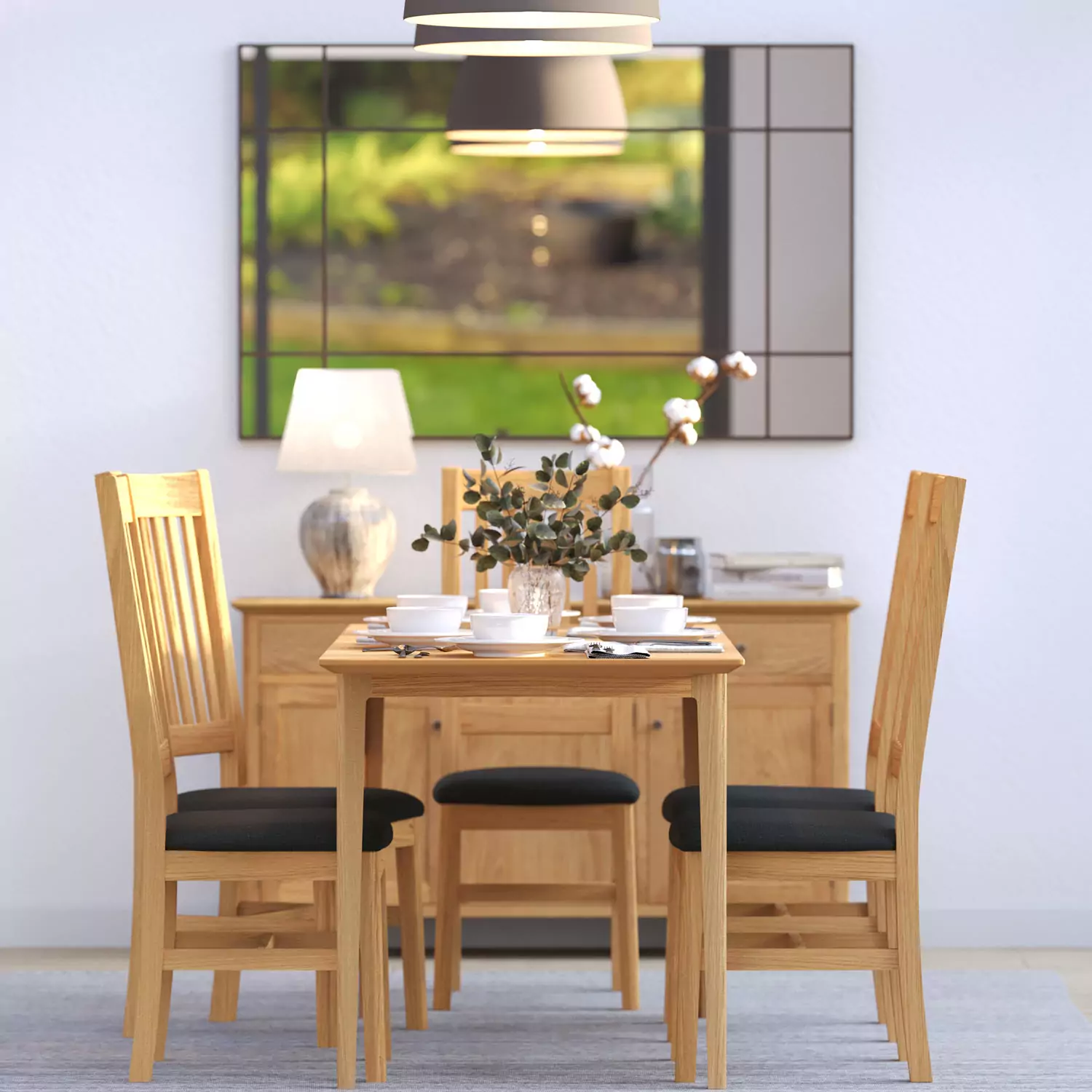 At 85cm x 85cm, this table is sized perfectly for two to four people, making it ideal for small families, couples, or anyone working with a cosy dining space or kitchen diner. The square format is particularly space-efficient in smaller rooms, often fitting where rectangular tables would feel cramped. The 76cm height is standard dining height, ensuring comfortable seating with most dining chairs.