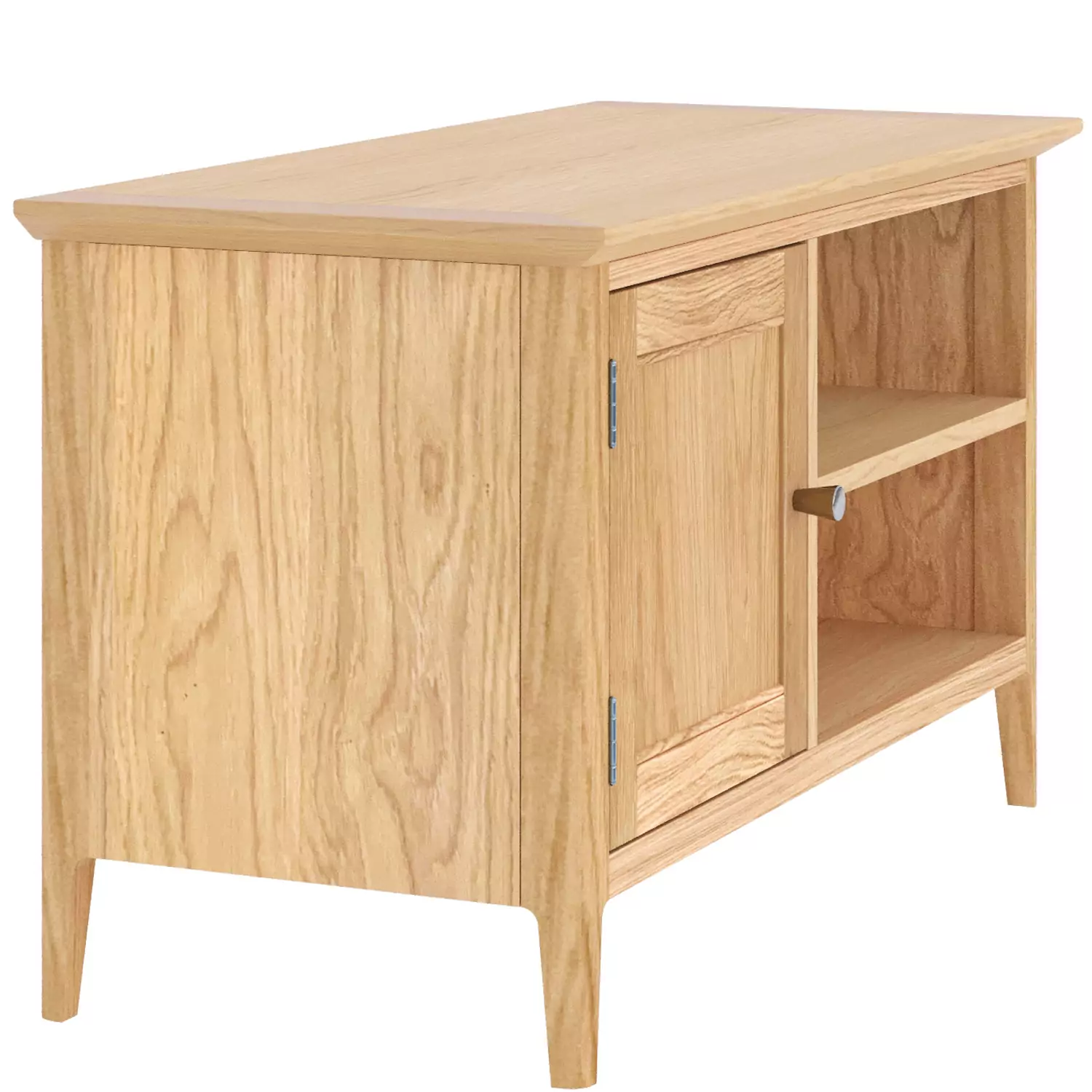 Not every living space is palatial, and not every TV is cinema-sized. This light oak TV stand celebrates the beauty of perfectly scaled furniture for real homes. At 90cm wide, 49cm high, and 38cm deep, it’s sized for smaller to medium televisions (think 32-43 inches) and rooms where a larger unit would overwhelm the space.
