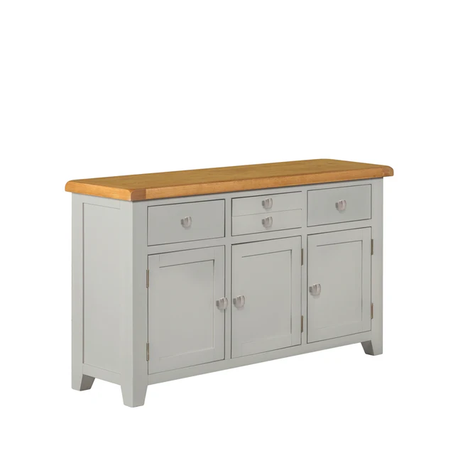 Traditional grey oak sideboards may incorporate classic design elements such as ornate carvings, turned legs, or panelled doors. These pieces exude a timeless elegance, adding a touch of sophistication and grandeur to your dining room or living room. They are often crafted from high-quality wood and finished with meticulous detail.