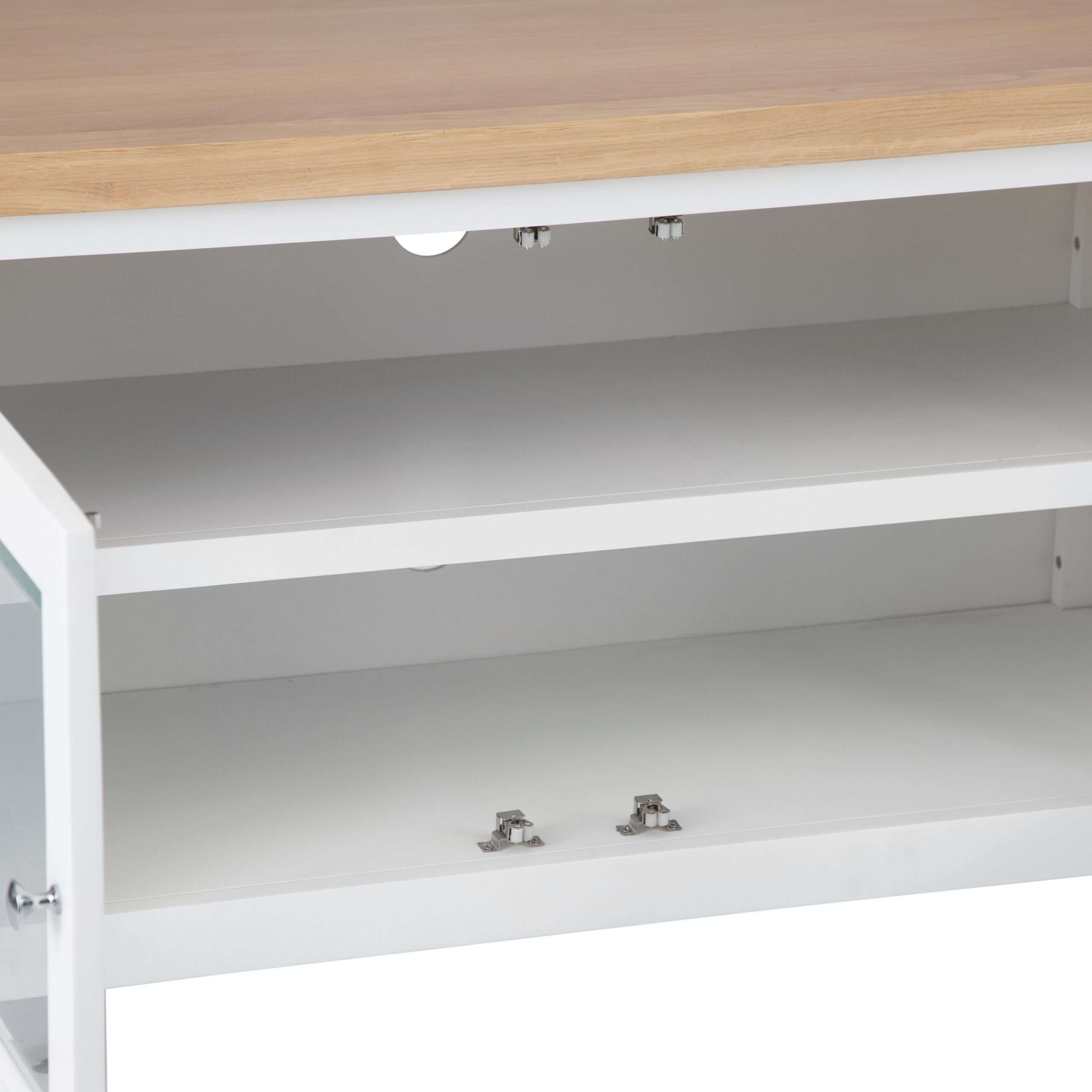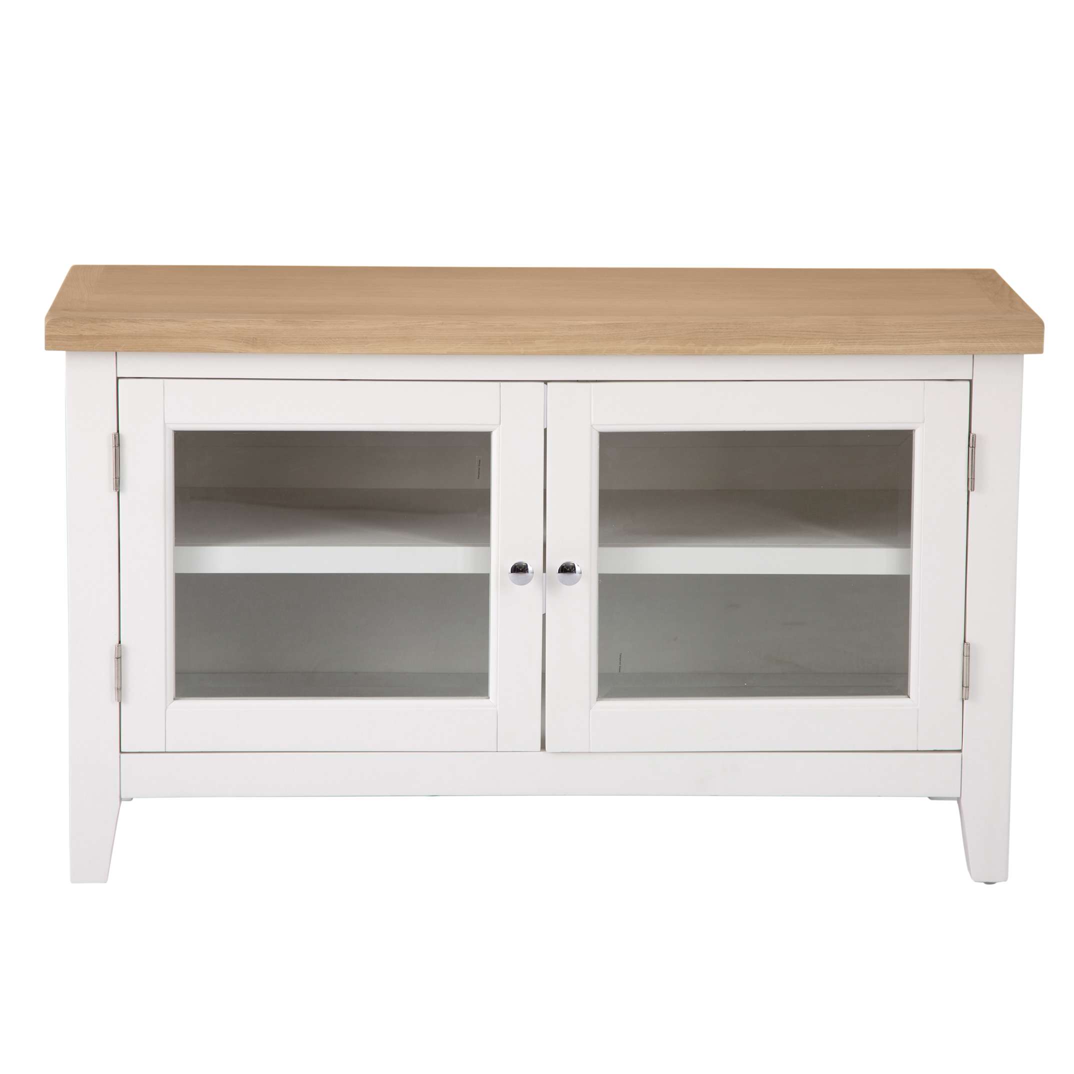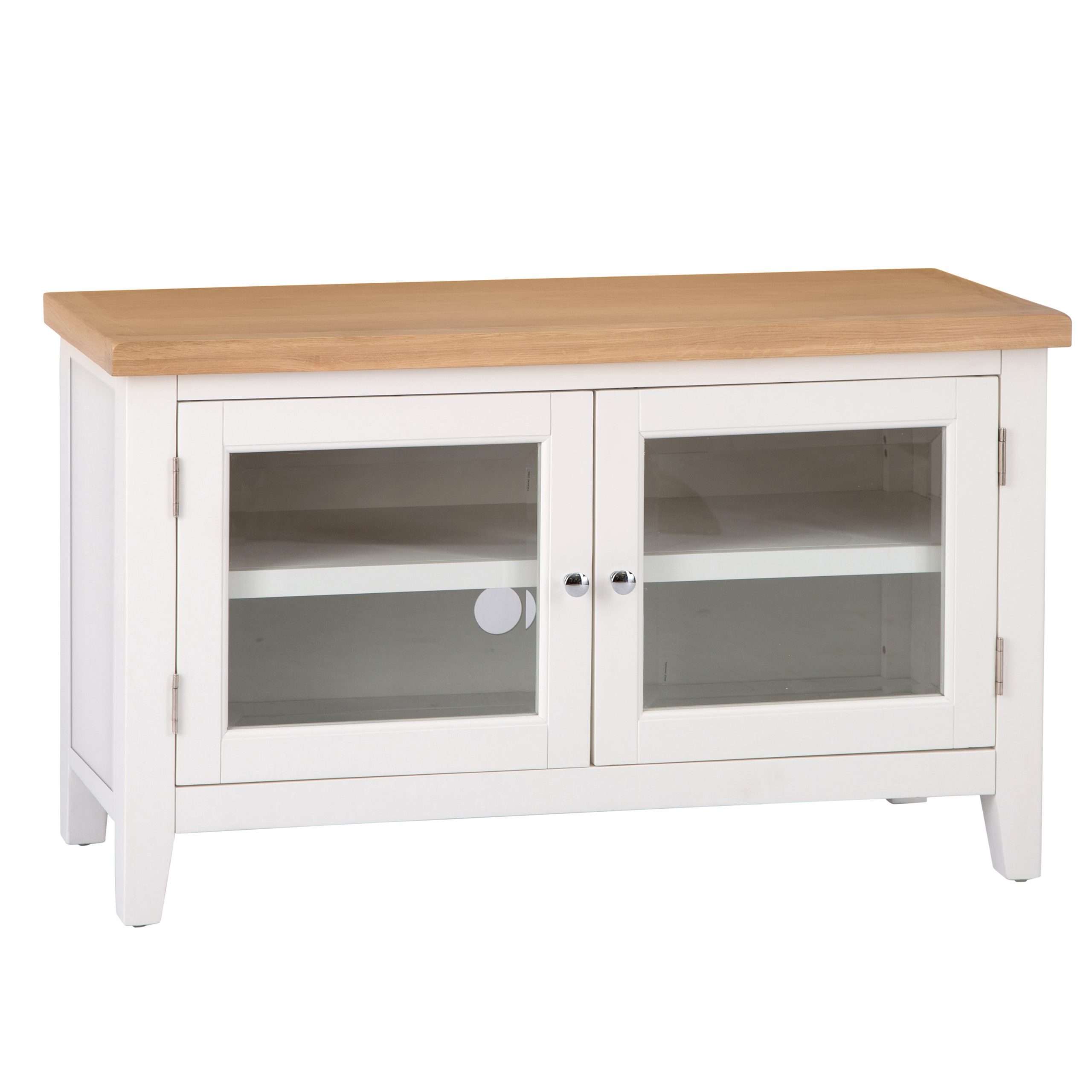 Transform your living space with this exquisite Solid Oak TV Stand. Crafted from high-quality solid oak, this stand features a stunning white painted finish with a contrasting oak top that exudes elegance and sophistication. The timeless design effortlessly complements any interior decor, adding a touch of luxury to your entertainment area.