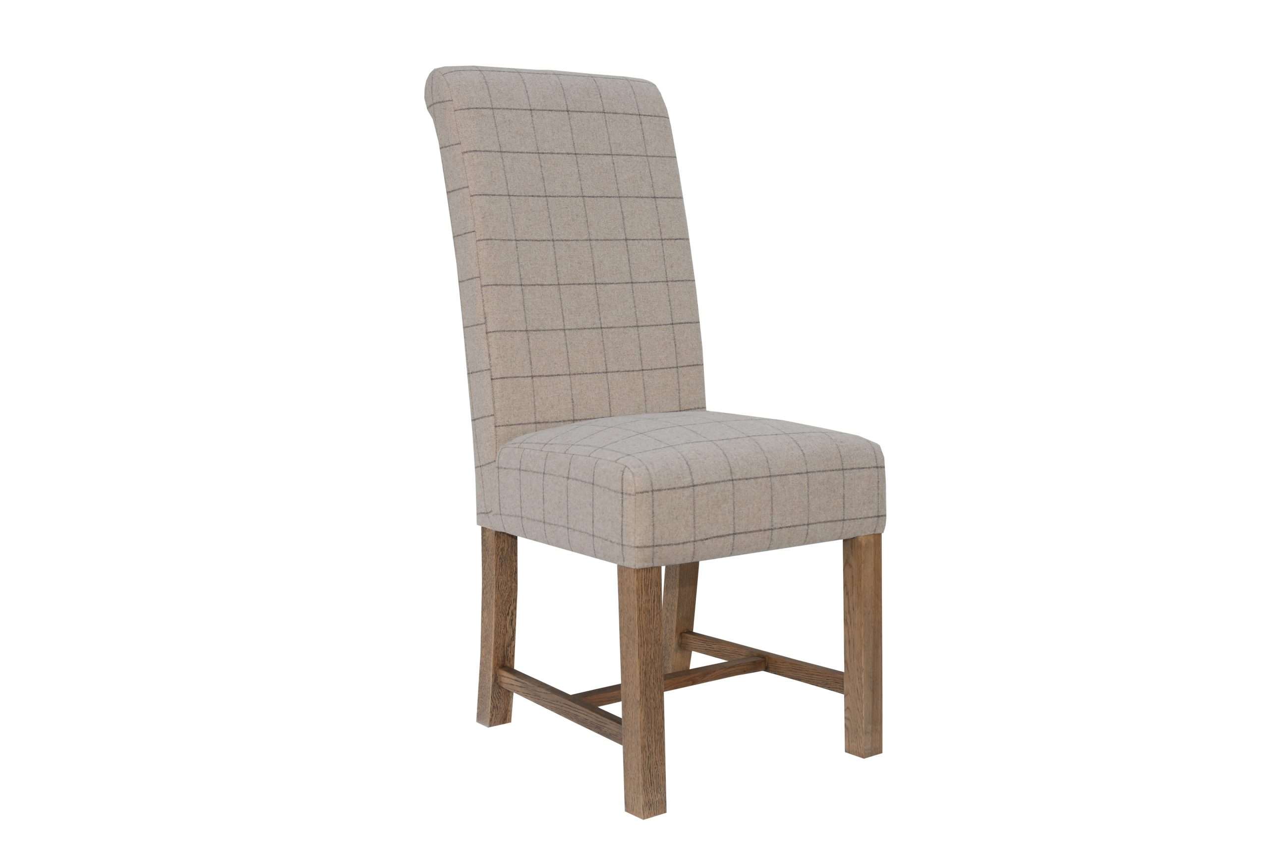 Scroll Back Dining Chair – Check Natural Wool
