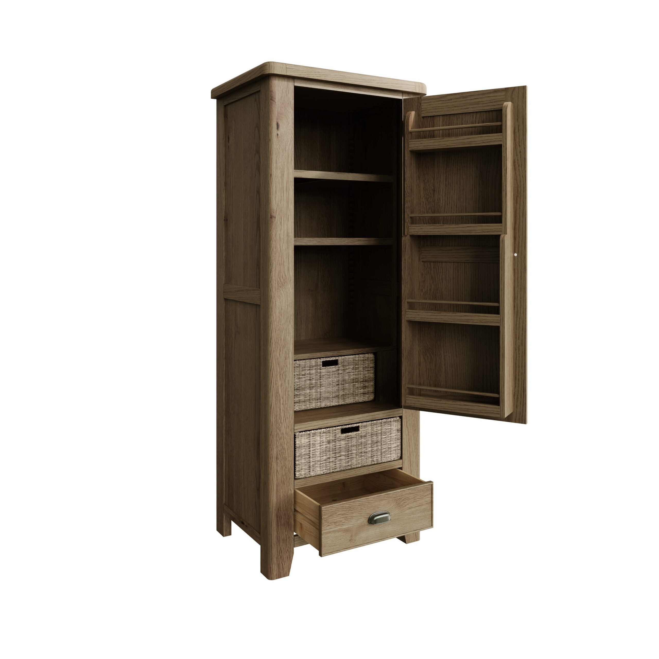 “Introducing the Regal Oak Furniture Collection Single Larder Unit. Introducing the Regal Oak Furniture Collection, an embodiment of regal splendor and enduring grace that transforms your living spaces into a realm of timeless luxury. Immerse yourself in the opulence of this collection, where each piece is meticulously crafted to evoke a sense of regality and refinement.