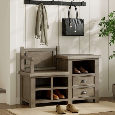 The finish also performs practically. Entryways get contact from shoes, bags, coats, hands carrying outdoor items—more wear than most furniture experiences. The grey tones of smoked oak hide minor marks and scuffs that would be obvious on lighter woods. When shoes brush against the bench or bags knock it slightly, you don’t immediately see damage. The finish develops graceful patina rather than obvious wear.