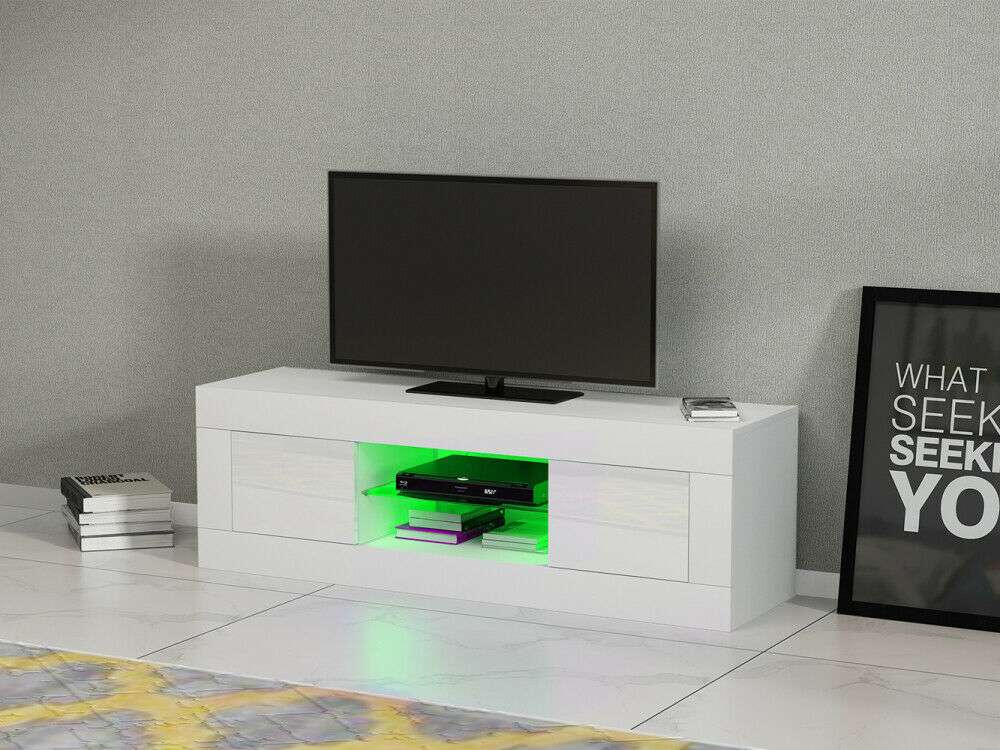 A modern White High Gloss TV Unit With LED Lights which is suitable for up to 55 inch TV’s. This TV cabinet contain a glass shelf in the middle with the doors being made from MDF finished in a high gloss. The middle panel is illuminated with blue LEDs lights (Provided). The framework is made from 16mm board.