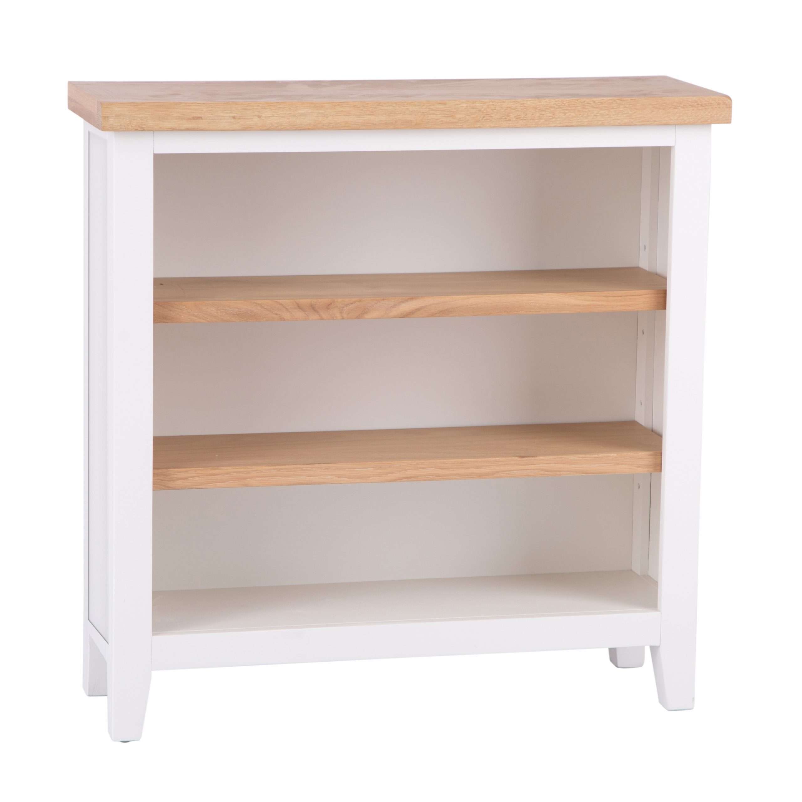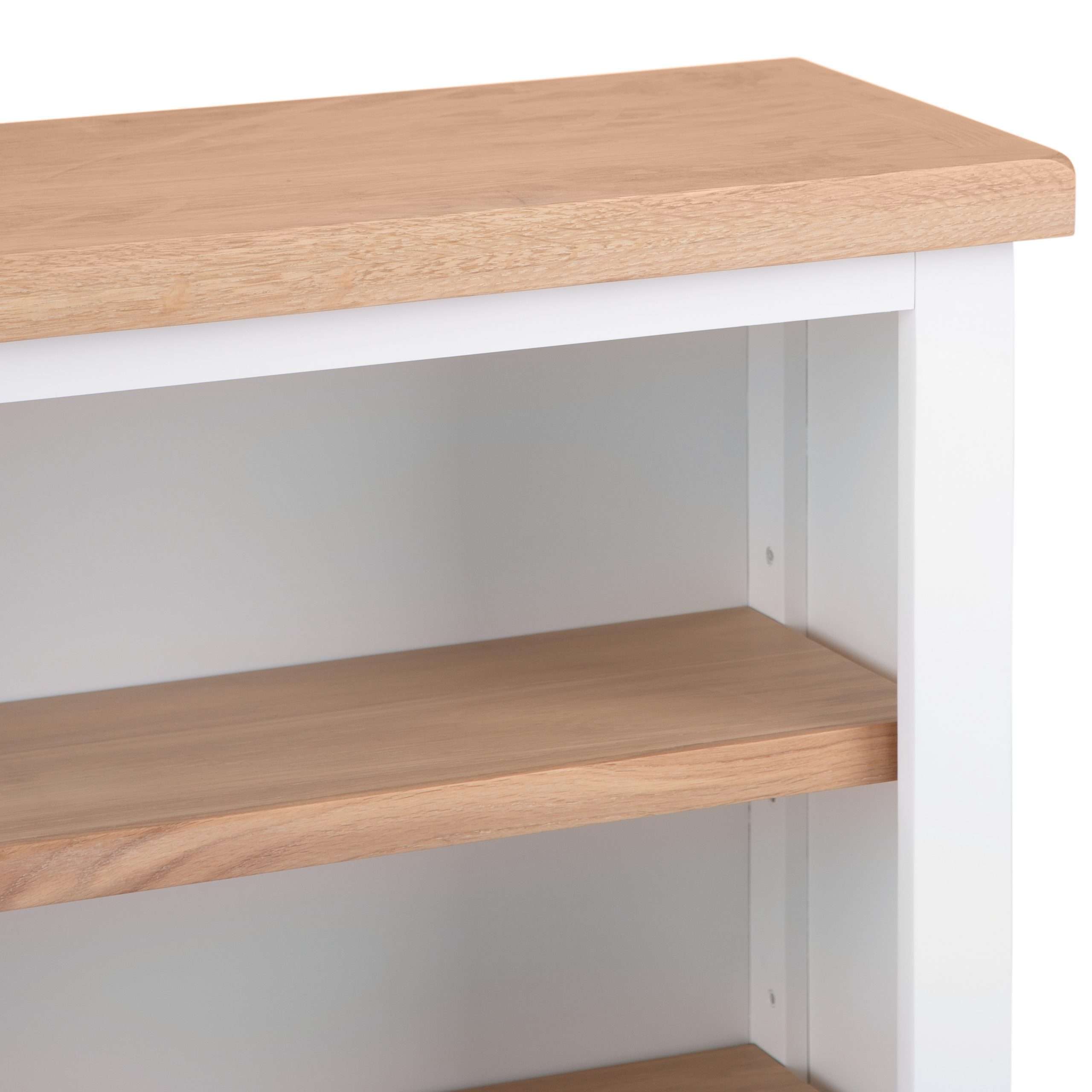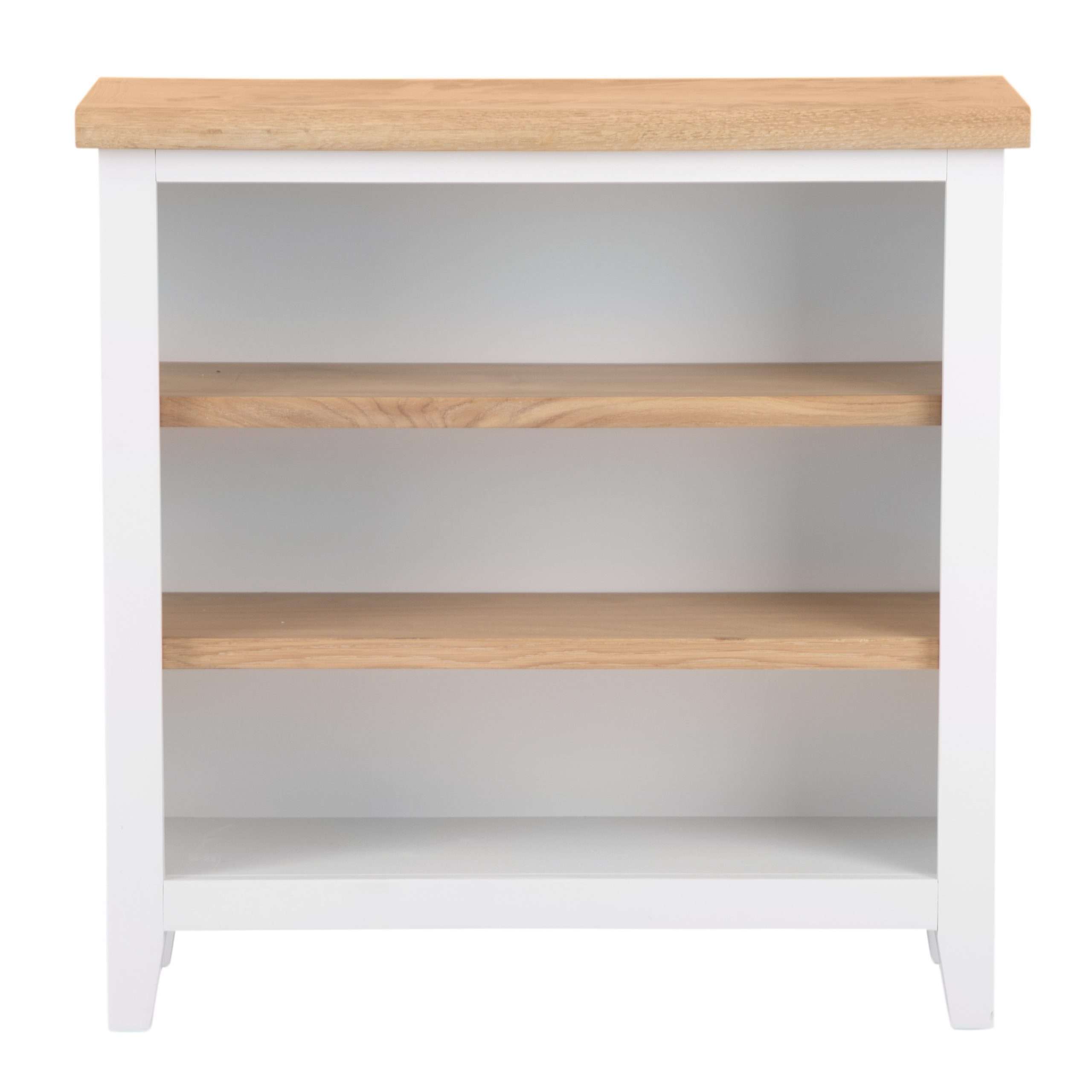 Transform your space with our Wide Short Bookcase featuring a timeless design that blends functionality and style seamlessly. Painted in a crisp white finish with a stunning oak top, this bookcase exudes elegance and sophistication. Perfect for displaying your favorite books, photos, or decor pieces, the wide shelves provide ample space to showcase your personal touch. Crafted with high-quality materials, this bookcase is not only visually appealing but also built to last. Its compact size makes it ideal for small spaces, adding storage and organization without overwhelming the room. Elevate your home decor with the charming appeal of our Wide Short Bookcase.