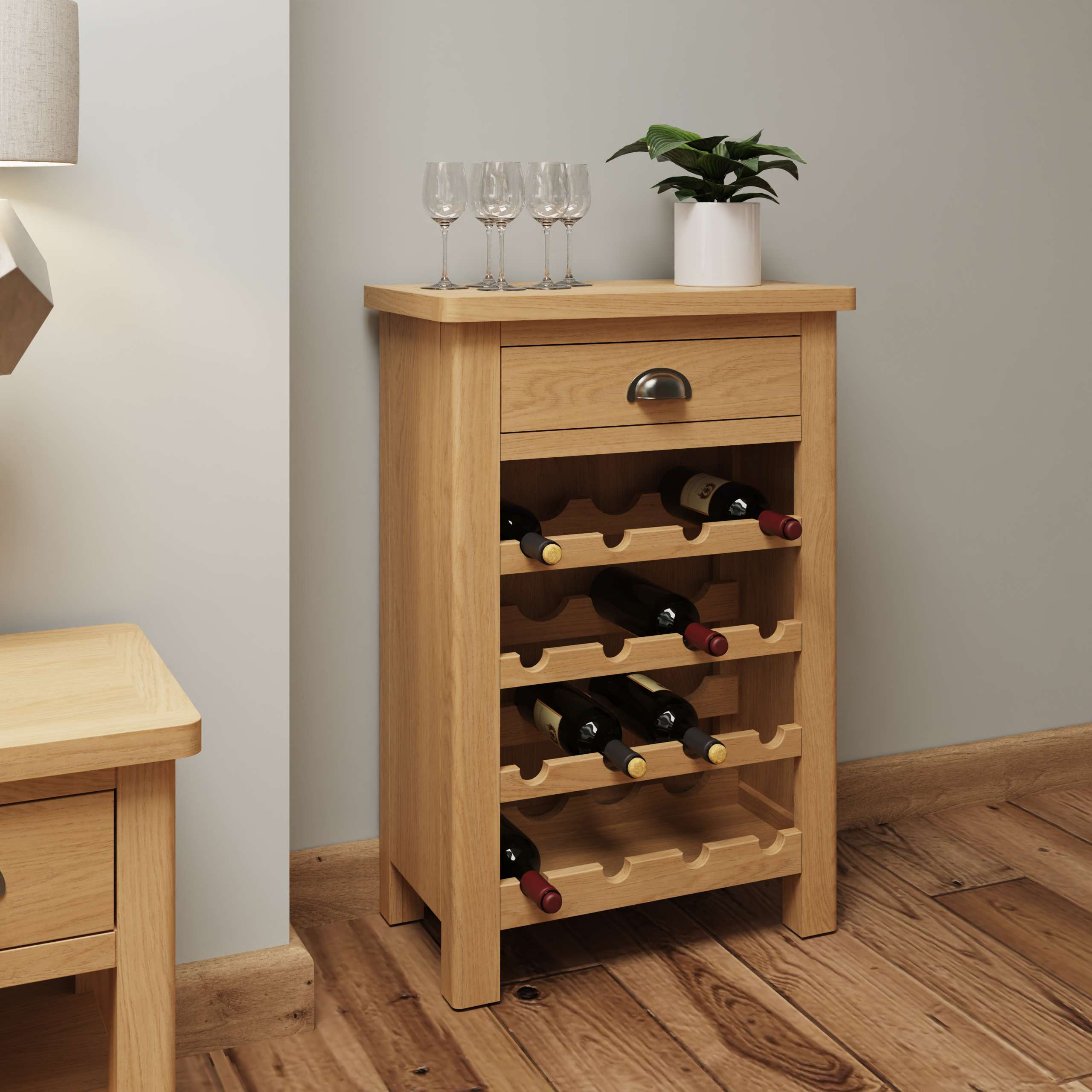 “Introducing the Manhattan Oak Wine Cabinet. Introducing the Manhattan Oak Furniture Collection, where urban sophistication meets the natural allure of oak. Inspired by the sleek lines and modern aesthetics of the iconic Manhattan skyline, this collection redefines contemporary living with a touch of timeless warmth.